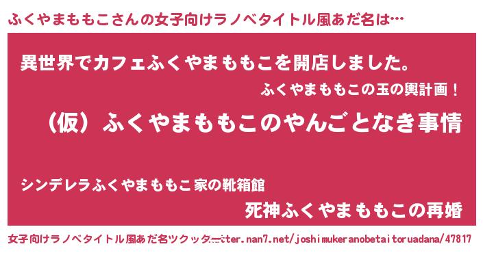 | 男性向けラノベタイトル風あだ名 | 『ふくやまももこの憂鬱』 |