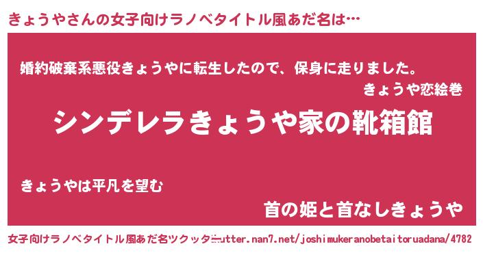 | 胡散臭い通販商品みたいなあだ名 | 『100人中100人が認めたマグネット磁石…その名も「きょうや」』 |