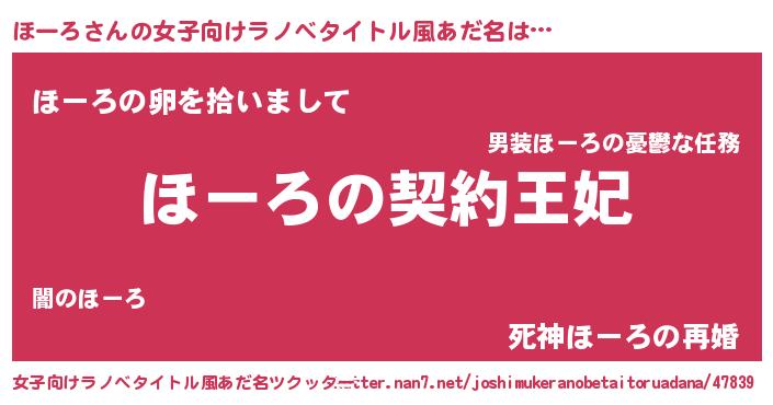 | 男性向けラノベタイトル風あだ名 | 『誰もが恐れるあのほーろが、ぼくの専属メイドになるようです。』 |