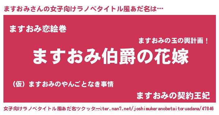 | 男性向けラノベタイトル風あだ名 | 『うちの娘の為ならば、俺はもしかしたらますおみも倒せるかもしれない。』 |