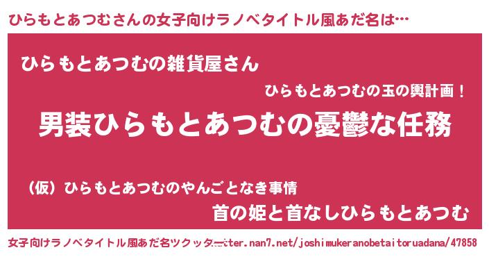 | 胡散臭い通販商品みたいなあだ名 | 『運命の人と巡り会える高級そうな壺…その名も「ひらもとあつむ」』 |