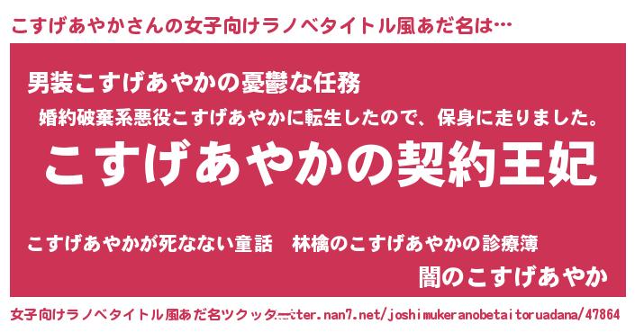 | 男性向けラノベタイトル風あだ名 | 『こすげあやかという概念が存在しない退屈な世界 』 |