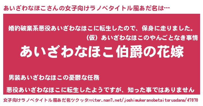 | 肩書あだ名 | 『あいざわなほこ大統領』 |