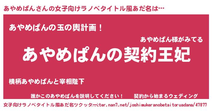 | 意味不明あだ名 | 『永久保存あやめぱん』『自称あやめぱん』 |