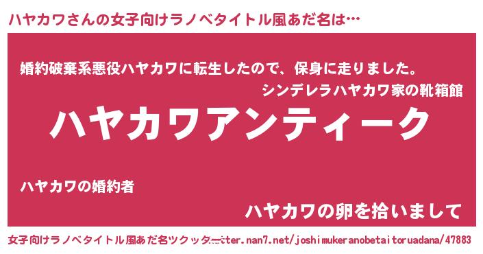 | ヒーロー風カッコイイあだ名 | 『ウルトラ戦士ハヤカワ』『黄金騎士ハヤ』 |