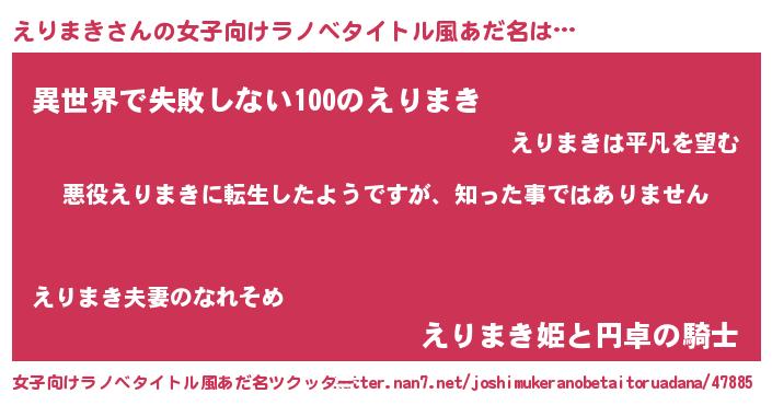 | 意味不明あだ名 | 『住所不定無職えりまき(62歳)』 |