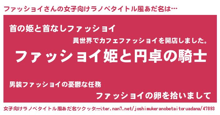| 男性向けラノベタイトル風あだ名 | 『ファッショイの憂鬱』 |