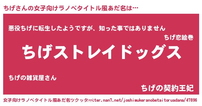 | 男性向けラノベタイトル風あだ名 | 『Re:ちげから始める異世界生活』 |