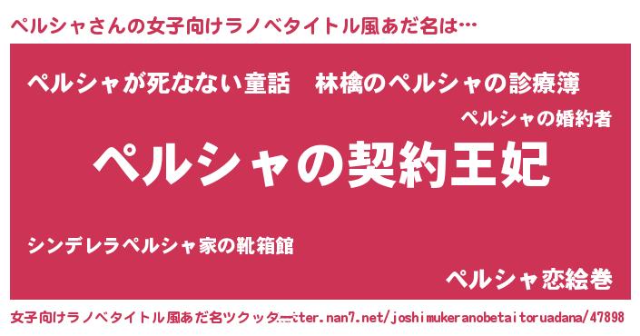 | 胡散臭い通販商品みたいなあだ名 | 『来世でも幸せになれる水素水…その名も「ペルシャ」』 |