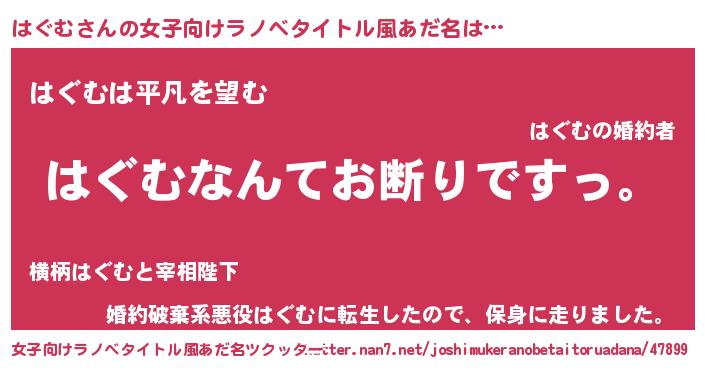 | 男性向けラノベタイトル風あだ名 | 『魔法科高校のはぐむ』 |