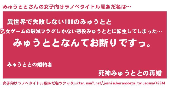 | ヘコむあだ名 | 『みゅうとと(遠い目)』『牛乳』 |