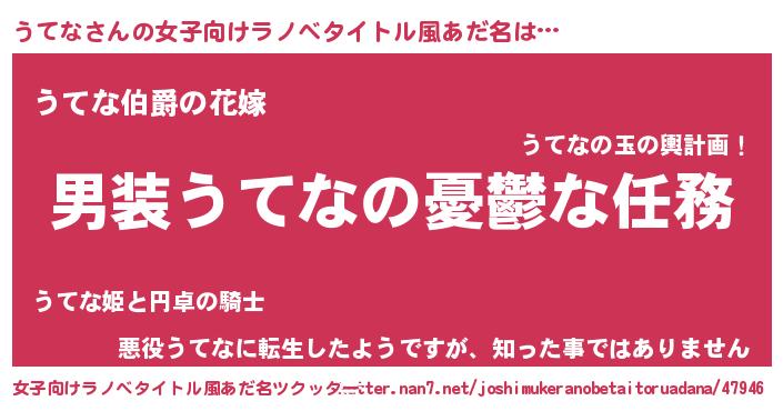 | 男性向けラノベタイトル風あだ名 | 『うちのうてなが世界を掌握している!』 |