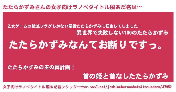 | 意味不明あだ名 | 『自称たたらかずみ』 |