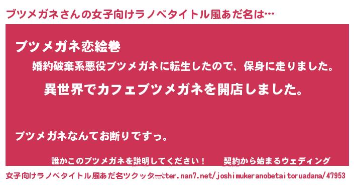 | 胡散臭い通販商品みたいなあだ名 | 『前代未聞の水素水…その名も「ブツメガネ」』 |