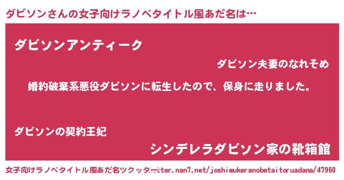 | 男性向けラノベタイトル風あだ名 | 『転生したらダビソンだった件』 |