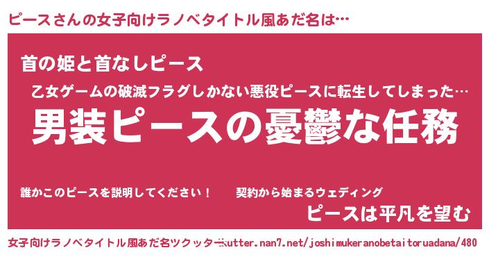 | 男性向けラノベタイトル風あだ名 | 『冴えないピースの育てかた』 |