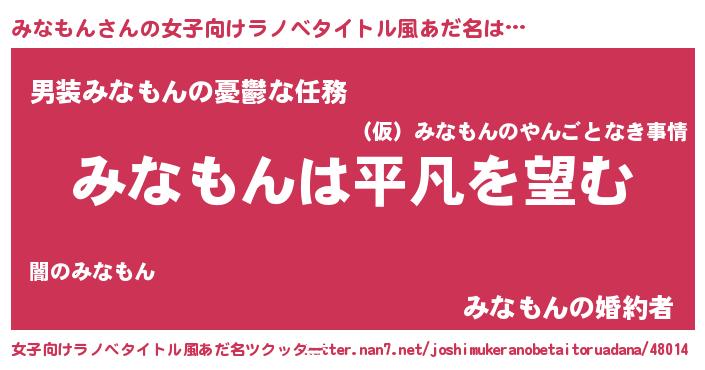 | 男性向けラノベタイトル風あだ名 | 『ダンジョンにみなもんを求めるのは間違っているだろうか』 |