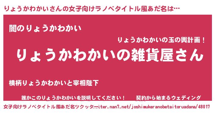 | 男性向けラノベタイトル風あだ名 | 『やはりりょうかわかいの青春ラブコメはまちがっている 』 |