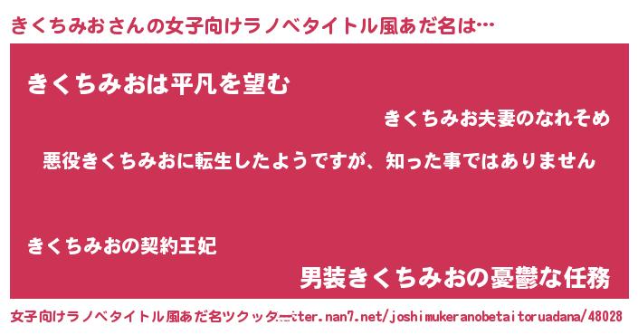 | 胡散臭い通販商品みたいなあだ名 | 『あなたにだけ特別に提供する世界で10本だけ現存している希少なブランデー…その名も「きくちみお」』 |