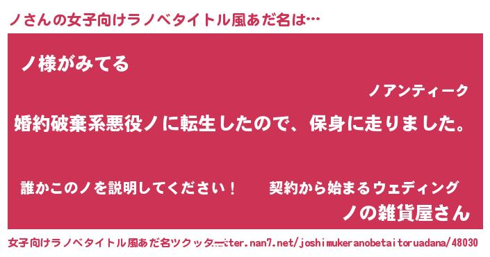 | 男性向けラノベタイトル風あだ名 | 『転生したらノだった件』 |