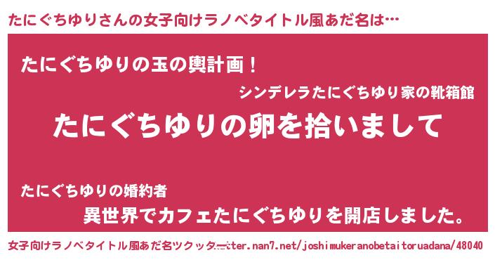 | 男性向けラノベタイトル風あだ名 | 『たにぐちゆりの嫁は女の子じゃないと思った?』 |
