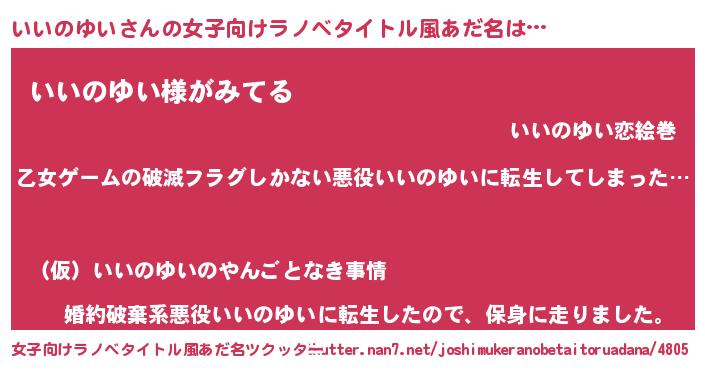 | 意味不明あだ名 | 『住所不定無職いいのゆい(84歳)』 |