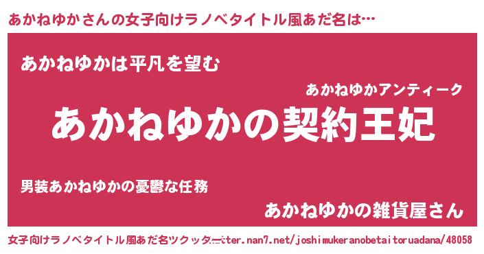 | 胡散臭い通販商品みたいなあだ名 | 『来世でも幸せになれる健康食品…その名も「あかねゆか」』 |