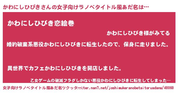 | 男性向けラノベタイトル風あだ名 | 『カワニシヒビキスレイヤー』 |