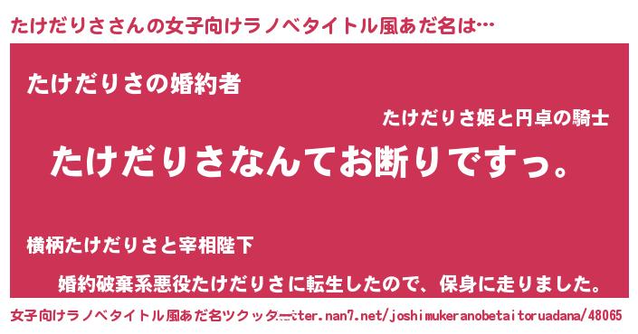 | 男性向けラノベタイトル風あだ名 | 『魔法科高校のたけだりさ』 |