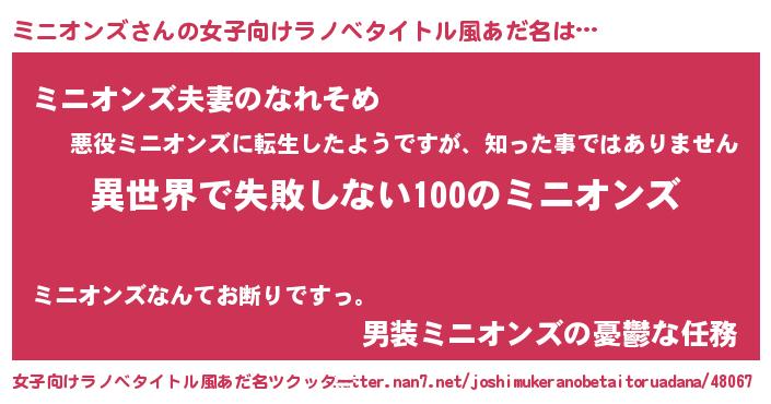 | 男性向けラノベタイトル風あだ名 | 『ミニオンズという概念が存在しない退屈な世界 』 |