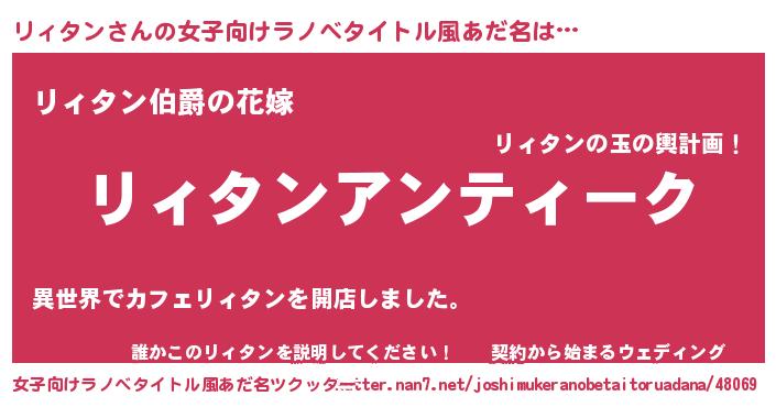 | 意味不明あだ名 | 『自称リィタン』『リィタンフォーエバー』 |