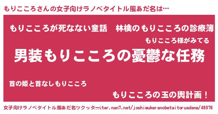 | 男性向けラノベタイトル風あだ名 | 『うちのもりこころが世界を掌握している!』 |