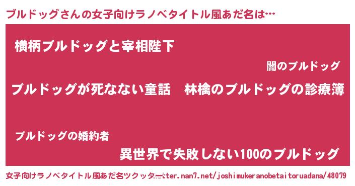 | 男性向けラノベタイトル風あだ名 | 『魔弾の王とブルドッグ』 |