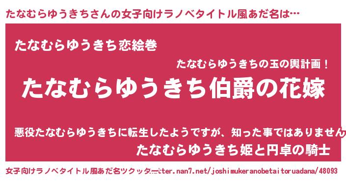 | ファンタジー風あだ名 | 『エターナルタナムラユウキチー』 |