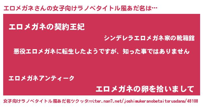| 胡散臭い通販商品みたいなあだ名 | 『あなたにだけ特別に提供する100年もののヴィンテージワイン…その名も「エロメガネ」』 |