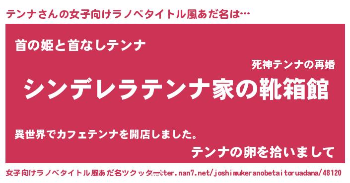 | 男性向けラノベタイトル風あだ名 | 『緋弾のテンナ』『はたらくテンナさま!』 |