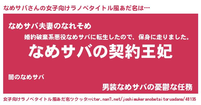 | 胡散臭い通販商品みたいなあだ名 | 『来世でも幸せになれる健康食品…その名も「なめサバ」』 |