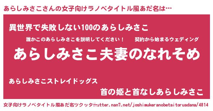 | 胡散臭い通販商品みたいなあだ名 | 『100人中100人が認めたイリジウム磁石…その名も「あらしみさこ」』 |