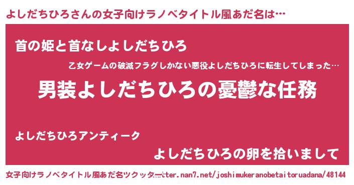 | ヘコむあだ名 | 『よしっぺ』『よしだちひろ(小並感)』 |