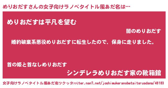 | 男性向けラノベタイトル風あだ名 | 『メリオダススレイヤー』 |