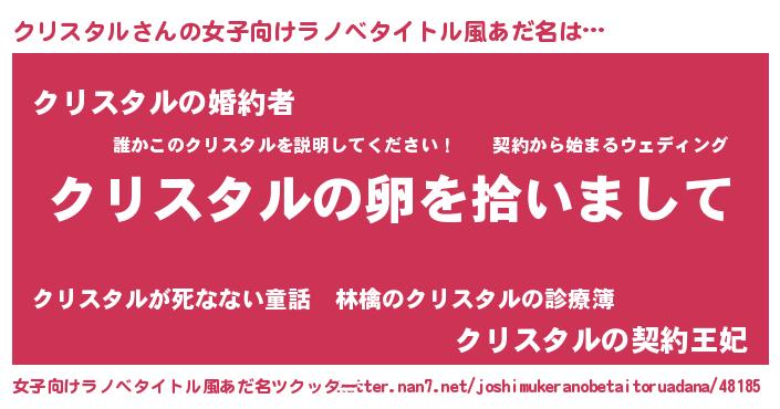 | 男性向けラノベタイトル風あだ名 | 『クリスタルの嫁は女の子じゃないと思った?』 |