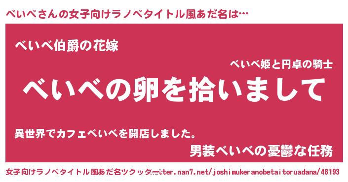 | 意味不明あだ名 | 『とにかく怪しいべいべ』 |