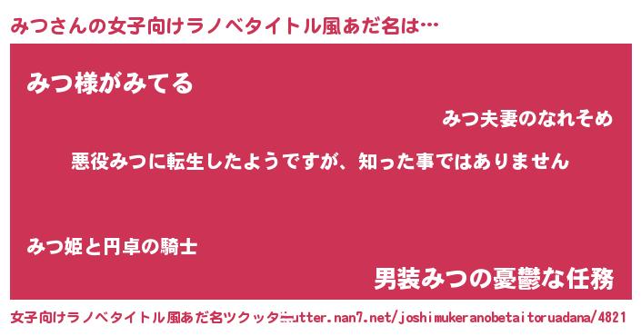 | 意味不明あだ名 | 『住所不定無職みつ(41歳)』『ペロリンみつ』 |