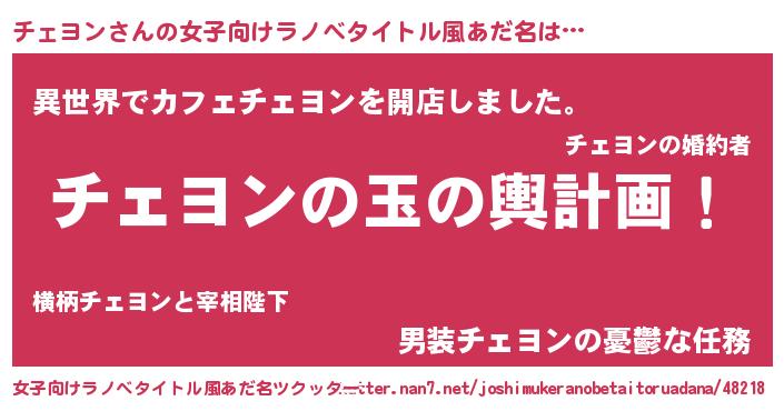 | ヘコむあだ名 | 『チェヨン(笑)』『レバニラ』 |