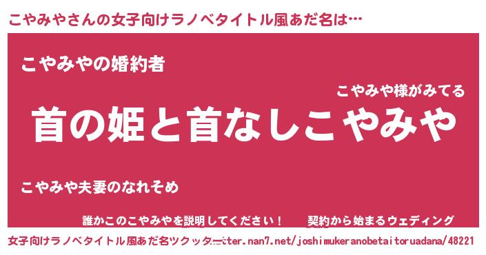 | ファンタジー風あだ名 | 『エターナルコヤミヤー』『コヤフェル』 |
