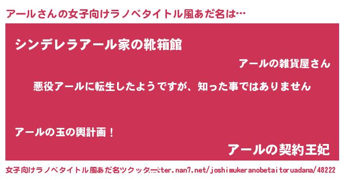 | 意味不明あだ名 | 『住所不定無職アール(13歳)』 |