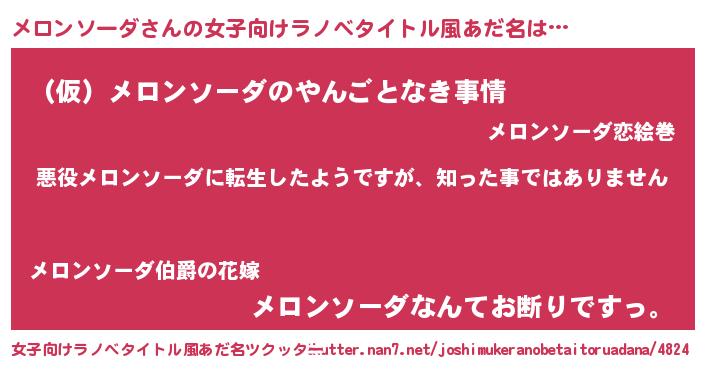 | 意味不明あだ名 | 『住所不定無職メロンソーダ(68歳)』 |