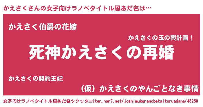 | 男性向けラノベタイトル風あだ名 | 『ノーゲーム・ノーカエサク』 |