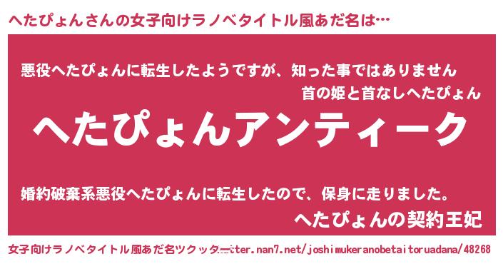 | 意味不明あだ名 | 『自称へたぴょん』『永久保存へたぴょん』 |