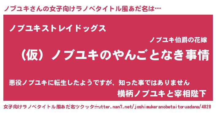 | 男性向けラノベタイトル風あだ名 | 『ノブユキの憂鬱』 |